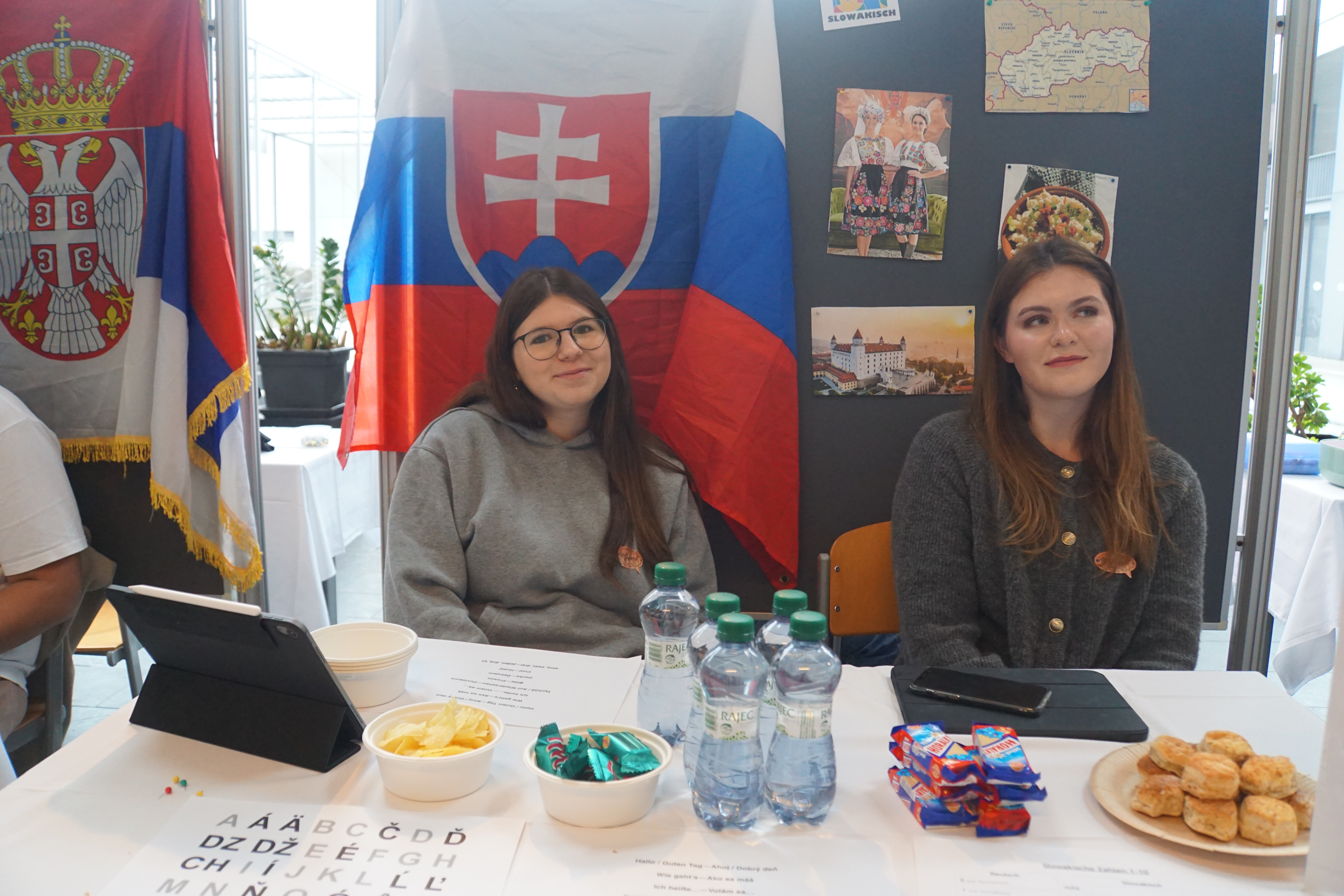 Die Besucher:innen konnten Grundlagen wie „Wie geht’s?“, „Hallo! „ in verschiedenen Sprachen lernen, Interessantes über die Länder und Kulturen erfahren, und regionale Spezialitäten verkosten.