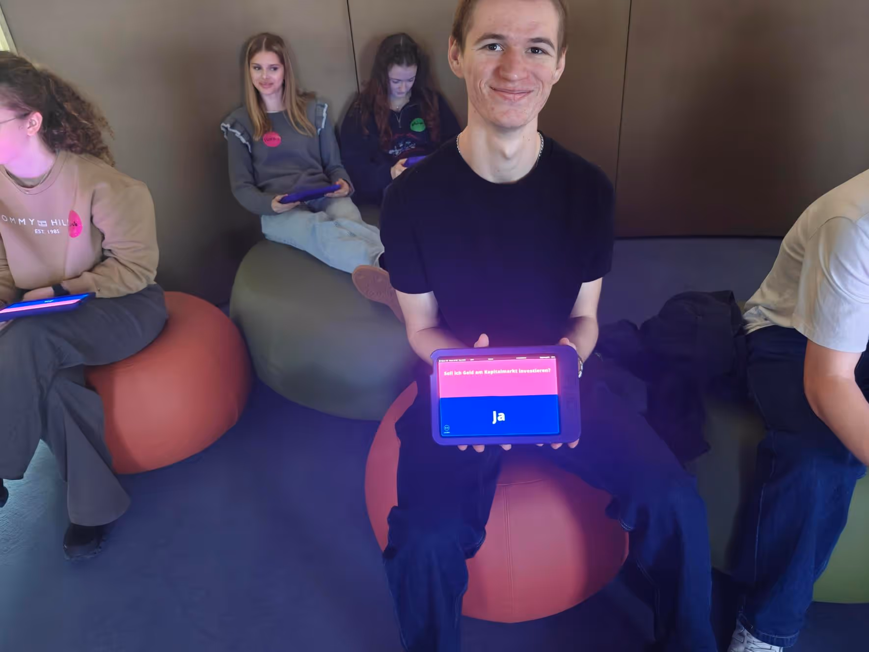 An verschiedenen Stationen lernten sie unter anderem den Kapitalmarkt kennen, knackten Schließfächer, nahmen an Umfragen teil und stellten ihr Wissen in interaktiven Quizzes unter Beweis. Die moderne, innovative Gestaltung der Lernstationen sorgte nicht nur für Begeisterung, sondern vermittelte auch wichtige Inhalte auf verständliche und praxisnahe Weise.