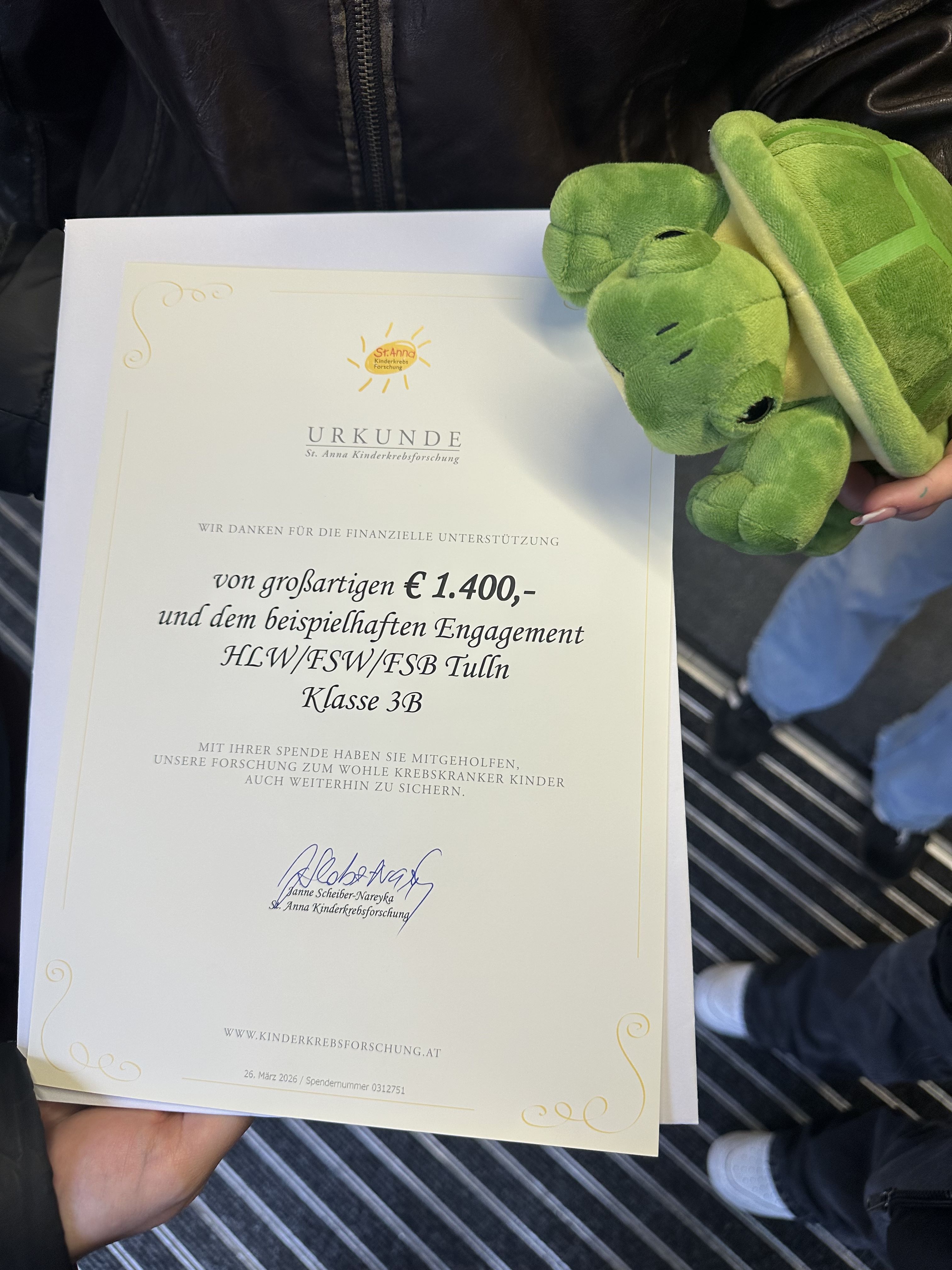 Der gesamte Betrag wurde der St. Anna Kinderkrebsforschung im März überreicht. Es macht uns sehr stolz, mit unserem Projekt einen Beitrag zur wichtigen Forschungsarbeit für krebskranke Kinder leisten zu können.