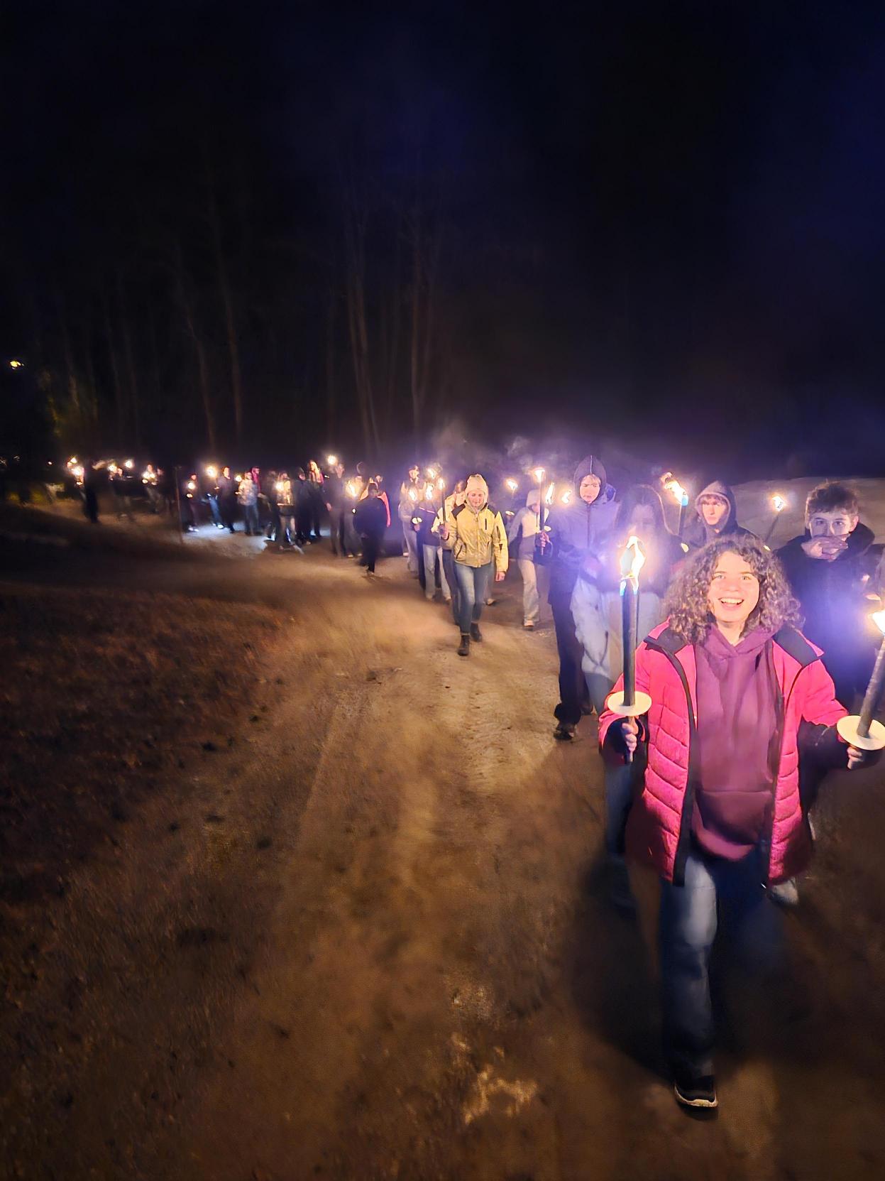 Ein besonderes Highlight der Woche war die stimmungsvolle Fackelwanderung. Auch beim Nachttrodeln, dem Skirennen, einem Spieleabend sowie der gemeinsamen Abschlussfeier kam der Spaß nicht zu kurz und der Zusammenhalt der Klassen wurde weiter gestärkt.